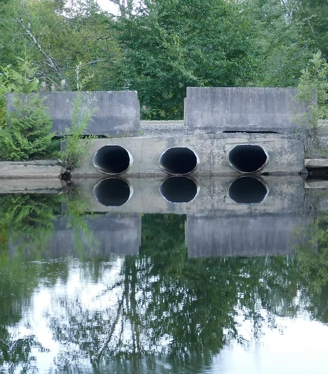 Notre ancien barrage est un barrage combiné. Il doit retenir le lac, mais aussi laisser passer des poids lourds sur son chemin construit par dessus le barrage. Dans ce cas, la Ville ayant refusé de payer pour la partie chemin de l’ouvrage combiné, nous avons opté pour un ouvrage séparé. Beaucoup moins coûteux et beaucoup plus stable. La partie barrage sera à retenir l’eau du lac, la partie chemin est un simple pont sur une petite zone lacustre qui recueille le surplus du lac.