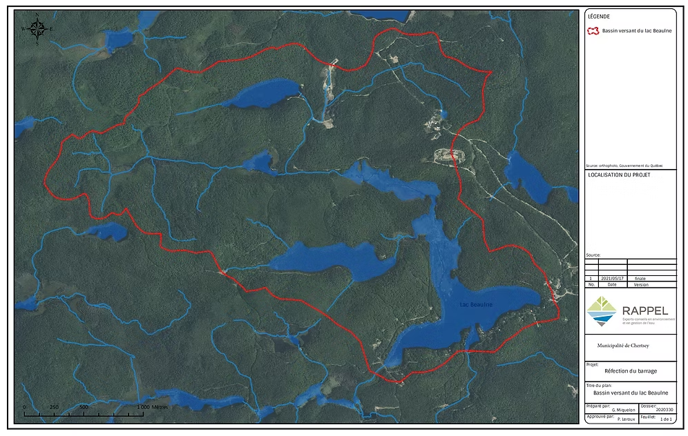 Exemple du barrage au  lac Croche, un lac semblable. Rencontre aussi avec Gervais Pitchen, ingénieur hydrologue à la retraite qui accepte de nous aider bénévolement.