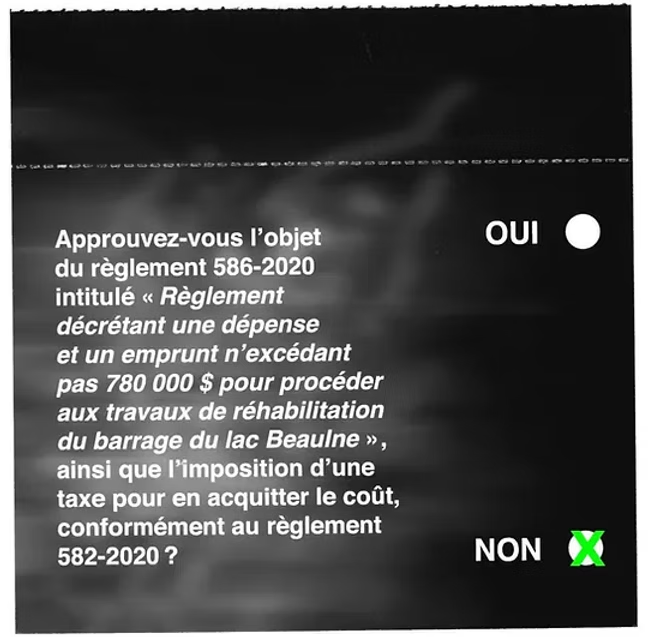 Le règlement d’emprunt de 780,000$ est rejeté à 94% avec 88% de participation.