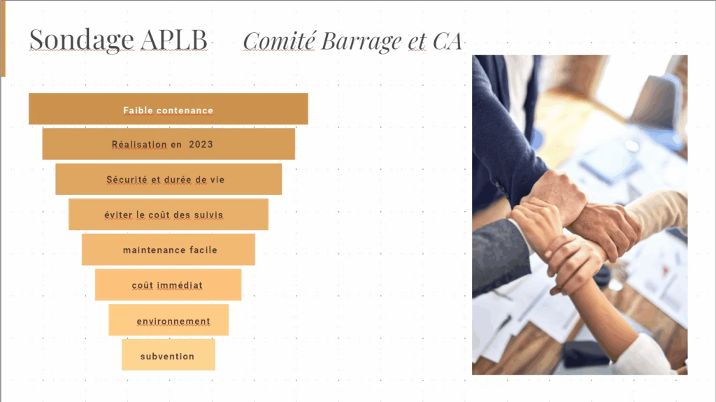 Le comité barrage de l’APLB se réunit pour faire ses recommandations à la Ville.