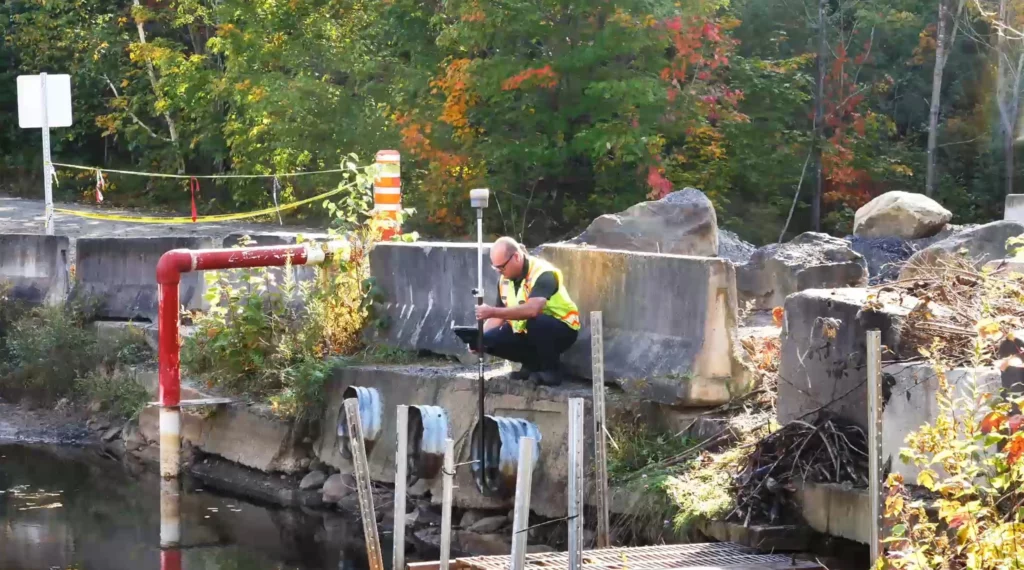 Le 30 septembre 2023, un arpenteur-géomètre a été invité à venir prendre des mesures afin d’établir pour l’APLB un repère fiable et scientifique du niveau de l’eau au lac en tout temps.